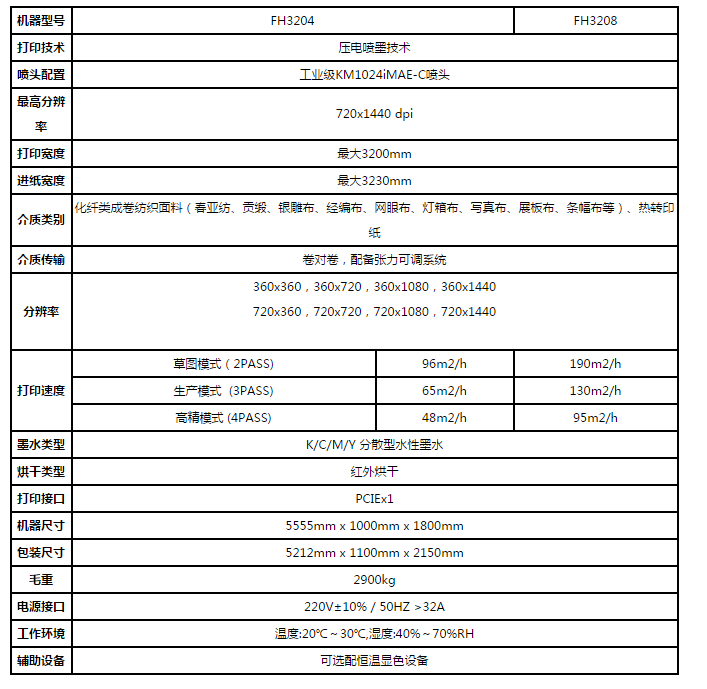 · 采用KM1024i高速工業(yè)級打印頭,更好地滿足工業(yè)化生產(chǎn)的需求。 · 機(jī)器外觀時尚大氣,做工精良,專業(yè)型客戶首選,化纖印染材料高產(chǎn)量打印利器。 · 采用膠輥+擺桿式張力可調(diào)系統(tǒng),可以適應(yīng)不同類型的化纖材料打印。· 機(jī)器兩側(cè)采用鋼板+全數(shù)控加工工藝,保證傳動系統(tǒng)的穩(wěn)定性和平行度,確保介質(zhì)進(jìn)給不皺布。 · 采用鋁合金橫梁雙導(dǎo)軌,750W松下交流伺服電機(jī),全進(jìn)口軸承加硬質(zhì)氧化帶輪,經(jīng)過超過2個月超負(fù)荷老 化試驗(yàn)的X軸傳動系統(tǒng)。確保小車運(yùn)行的平穩(wěn)性和耐久性。 · 采用全新研發(fā)的PCIE+光纖的數(shù)據(jù)傳輸系統(tǒng),數(shù)據(jù)傳輸更快更可靠,奠定高速打印基礎(chǔ)。 · 小車高度可調(diào), 以更好地適應(yīng)不同厚度介質(zhì)的打印。 · 可選配熱轉(zhuǎn)印紙打印組件,一機(jī)多用,節(jié)約投入成本, 應(yīng)用更廣泛。 · 熱轉(zhuǎn)印打印系統(tǒng)采用變頻可調(diào)吸附系統(tǒng)。 · 應(yīng)用領(lǐng)域:旗幟布、窗簾、座椅墊、彈性回轉(zhuǎn)布、墻布、化纖燈箱布、熱轉(zhuǎn)印紙、T恤衫等。